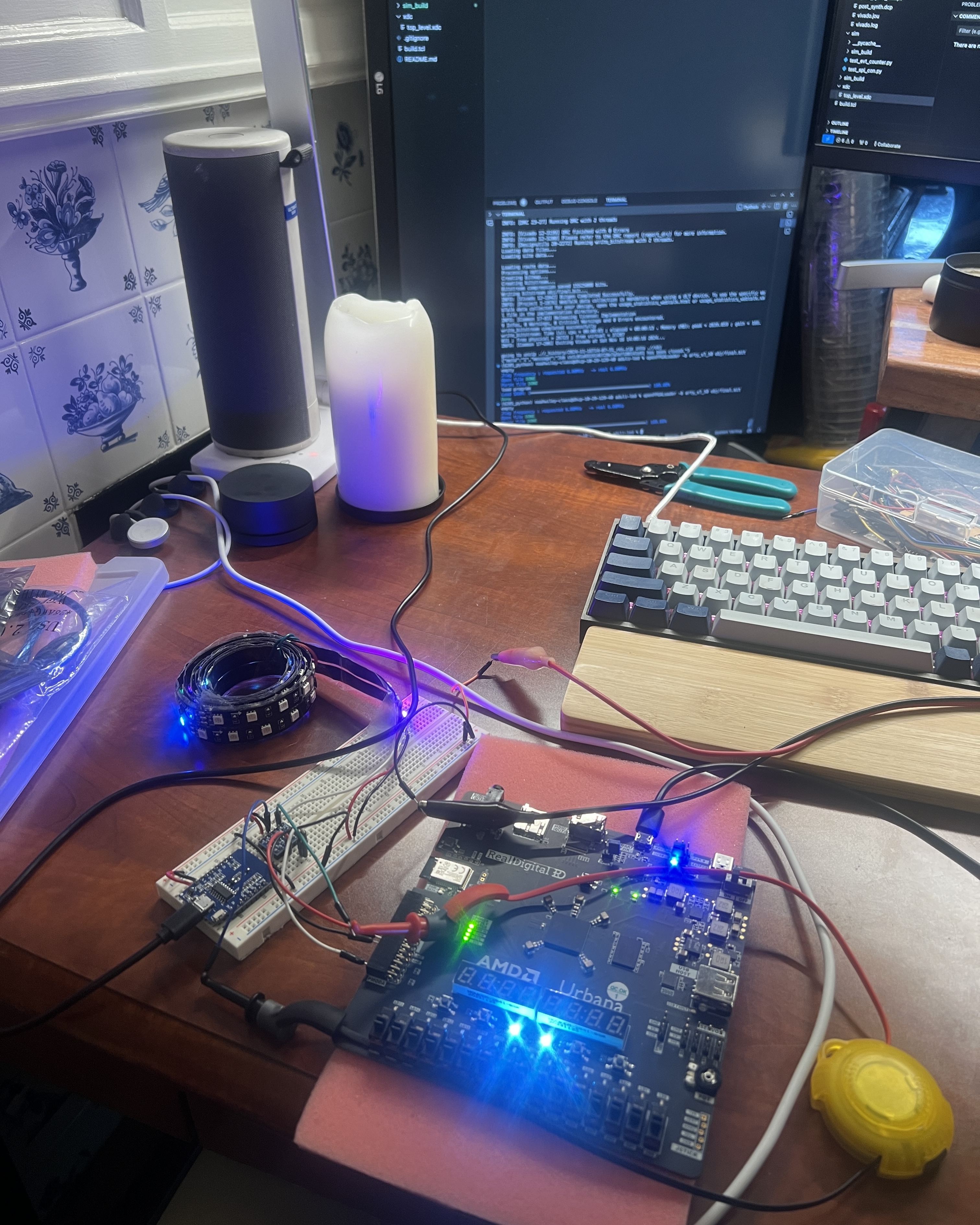Auto-calibrating Display using Unconstrained Layouts of Individually-addressable LEDs built entirely in Spartan7 FPGA with SystemVerilog. Integrating camera, HDMI, and WS2812b LEDs sporting a custom log(n) calibration algorithm. Awarded MIT 2025 Northern Telecom/BNR Project Award.